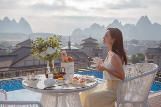 我们一家人超级喜爱这家酒店,回国后依然念念不忘。喜欢干净温馨的环境,房间舒适卫生,楼上可以欣赏阳朔漂亮美景。早餐丰富还有下午茶及晚安粥,民族服装体验,在这酒店拍了很多美丽照片,超出片。酒店有位亲切有礼的阿姨早晚都见到她勤奋的工作,值得赞扬。酒店去西街很靠近,有机会再来