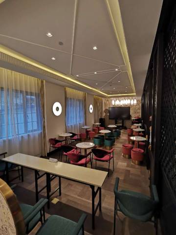 酒店大堂内的鸟笼吧,功夫茶实用创意, 体现前卫的复古潮流风向。具有典型的海派建筑美学风范和浪漫文化风情。酒店1楼设有大堂、酒吧、餐厅为一体的休闲社交空间,提供西式、中式餐饮、下午茶及调酒师现场为您调制美酒,在休闲中触摸中西融合的奇妙。锦江都城上海新天地酒店成为上海新的风尚标和打卡点。