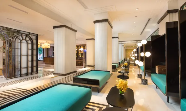 酒店设计源自于西方又不同于西方,源发于中国又异于中国,主色调为清新绿和炙热红,客房装置法式流苏沙发,复古的蒲草吊灯,走廊墙壁Art-deco风格壁纸,仿佛置身于文艺复兴时期的法国街头。