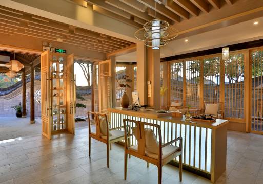 民宿主人将独特的江南庭院、小桥流水的精致情调与禅意和风完美结合,设计上以淡雅节制、深邃禅意为境界,内部以浅色木饰面为基调,大量运用原木,并加入石、竹等自然材质,外部与古镇-乌镇完美契合,打造出了曲径通幽、质朴而精美的特色民宿。