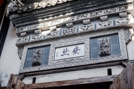 徽派建筑,精致的雕花窗,游鱼戏水,