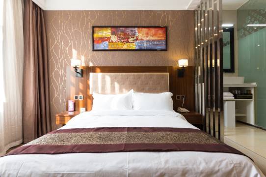 房间安静,晚上基本上没啥声音,前台小姐姐服务很好,卫生间比较宽旷,给我们升级了房间,房间大,很棒的一次体验