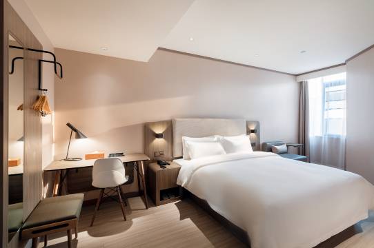 酒店就在地铁附近,周边吃饭购物方便。房间比想象中大,很干净,隔音不错,睡得很踏实。性价比高。工作人员服务都很热情!