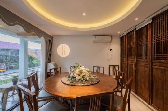 超大落地窗将连绵山景框成一幅流动的画——晨起看日出染金峰峦,午后泡一壶茶等云海翻涌,入夜伴星河虫鸣入眠。