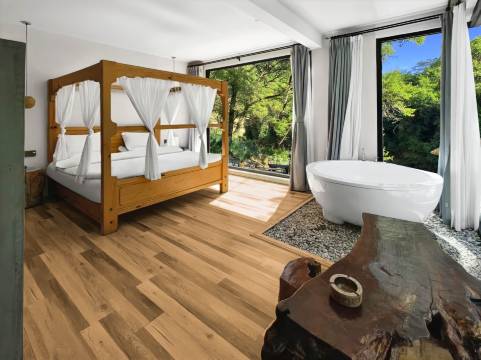 朋友圈看到这家,一直挂念着。这次走川藏中线,从成都出发第一天晚上就住下了。非常喜欢这里的环境,完全在大自然怀抱。房间宽敞舒适,装修现代简约,干净明亮。房间的凉台上喝茶聊天,潺潺溪水,阵阵鸟叫,清新的空气宛如世外桃源。老板热情周到服务态度很不错👍这里靠近莫斯卡,党岭都很近,秋天一定会再来的!