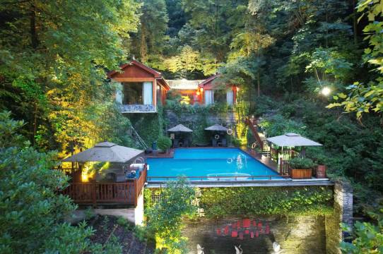 酒店位於鳳凰古城南華山麓,四周青山環抱,園中流水潺潺,坐享幽靜自然的人文庭院環境。