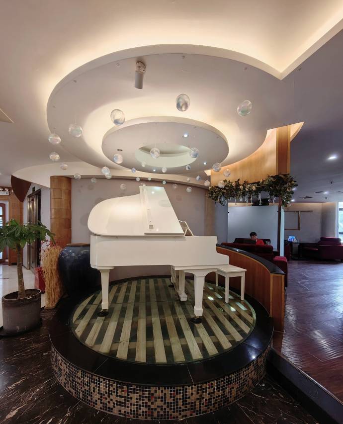 老同学来上海玩,在家附近订了这个酒店,大堂是西餐休闲咖啡茶吧,可以办公,可以商务洽谈,他表示很满意