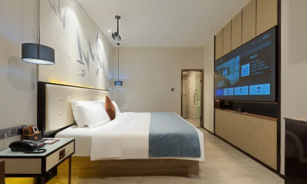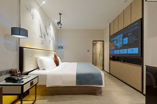地铁口走到酒店也就3分钟,女儿订的酒店,房间卫生干净,设施设备也是智能,还有机器人送餐挺方便的!床睡的也很舒服👍还送了牛奶小零食呢