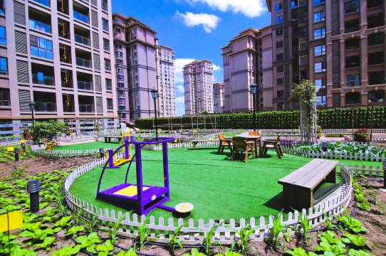 每个房间都有开放式阳台,面积约为62-77平米,精致装潢、酒店式配置。楼下有上万平开放式草坪,绿意盎然。