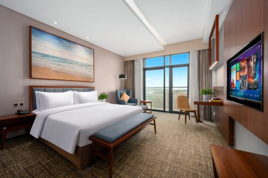 下了飞机,联系酒店安排接车服务,非常高效,我到达乘车点的时候,车已经在等候了。去到酒店非常快,不到十分钟。酒店前台接待员热情招呼,享用了欢迎饮品,办理入住非常快,还主动介绍了酒店设施和周边攻略,感觉好贴心。