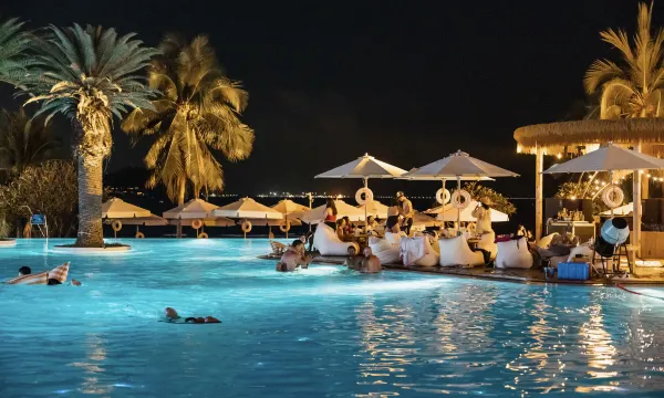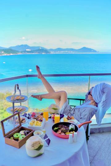 酒店坐镇大东海核心C位,背倚鹿回头、直面整片蔚蓝海湾,环境美得无可挑剔。户户带观景阳台,45度无遮挡一线海景,躺床上就能看日出日落,窗边的网红浴缸泡澡时直面碧海蓝天,度假氛围感直接焊死。公区是高级感拉满的潮奢设计,三楼无边泳池海天一线,随手拍都是大片,园林绿植打理得精致有序,一步一景,完全是理想中海岛度假的样子。