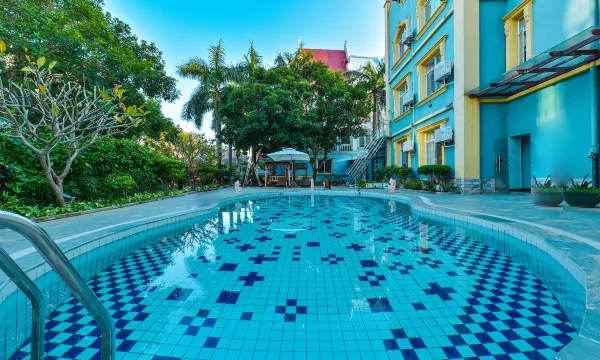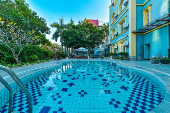 酒店是一栋别墅小楼,有个小泳池,满眼绿植和盛开的鲜花,房间设施齐全,卫生很好,到银滩海边步行几分钟,位置很好。老板一家人都很热情,特别满意