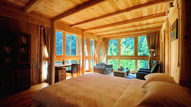 当天只有我一个住客,管家春春和大厨夫妇都住村里,但是春春担心我一个人害怕,所以当天留守店里。是啊,深山老林,人迹罕至,一人独住一栋老房子——这感觉别提有多带劲儿了!其实一点都不带怕的哈哈哈!
