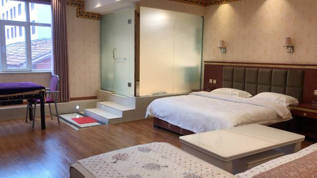 房间空间很大,还有沙发靠椅之类的,住在酒店里可以躺在沙发上看电影,别有一番风味。前台服务小伙子热情好客,礼貌有加,有问必答,我问了一下,班玛县至久治县的黑车在哪坐车,前台小伙子还怕我上当受骗,给我找了一个车,非常不错的服务,还能贴心为顾客着想,非常完美的一次入住体验。