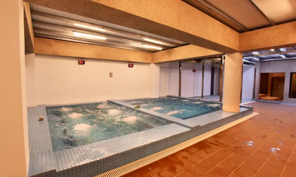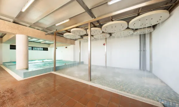 一楼的泡汤就是两个水池,却没有冲澡的地方有点可惜,湿湿的只想冲澡只好包毛巾走回房间。