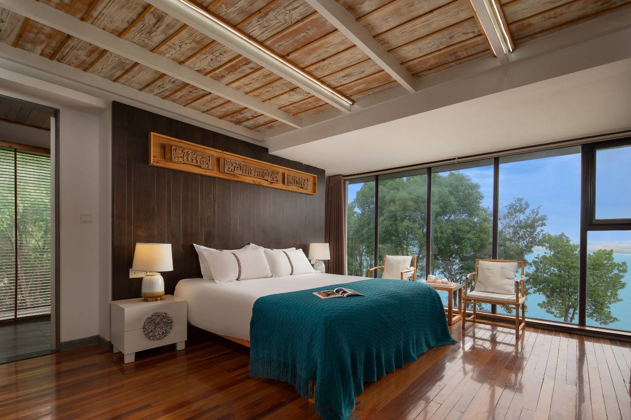 酒店占地1500余平米,庭院建筑设计充分融入了江南园林的要素,景观别致,房型多样,设施齐全。每间客房各具特色,湖景房给您带来180度观湖体验,家庭房提供亲子度假的舒适感受,多种房型适合各类客人及团队入住。