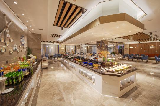 酒店总建筑面积约23000平米,客房多间,5间不同规格的会议室及一个约1000平方米的大型宴会厅,完整的配套设施满足宾客多元化及灵活性的会议需求,同时酒店拥有水雲阁包厢群、三春璧中餐厅及爱琴海·咖啡厅和大堂吧,另配备商务中心、健身房等休闲设施。