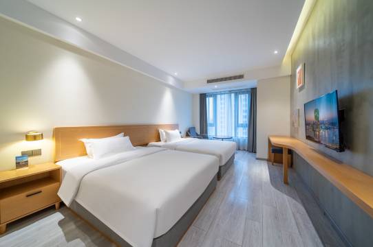 房间很干净,看得出来一客一换,也没有什么异味,挺宽敞的,也有窗户,周围美食很多,附近玩的呀,台球也都有很方便,离东华医院也蛮近,交通这方面很便利,而且负一楼就是停车场,真的很满意停车免费服务,总体来说挺好的!