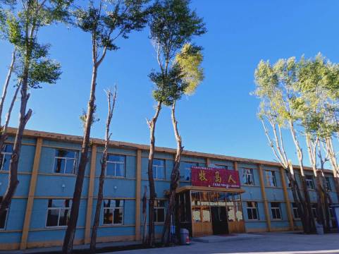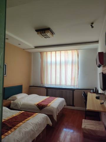 二楼可以遥望祁连雪山的宾馆,但是这个宾馆也有一定年头了,你不能对他有太多的要求,但是保暖还是可以做到的,因为山丹马场那个地方,我去的时候还是很冷,但是在宾馆里开着电热毯电暖风,都快捂出汗了,哈哈