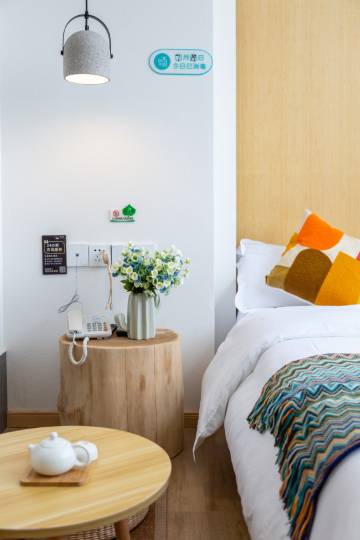 酒店地处阜阳市颍泉区浙江商贸城步行街,设计充满了浓郁的人文气息和文艺范,客房宽敞,床品舒适,家具用色大胆,既蕴含精致与典雅,又有着十足的设计感,周边的自然环境上佳,文峰公园/刘琦公园近在咫尺,空气清新,是您林中散步,闲情垂钓的好去处。同时临近阜阳步行街、阜阳商厦购物中心,万达广场在空闲之余,购物逛街,方便便捷。
