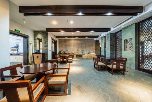 酒店建于岛上两个洞窟景区(野人洞、海盗村)中间,外观采用江南古建筑风格,与周边的古民居和谐融合,交相辉映,成为岛上一道亮丽风景。