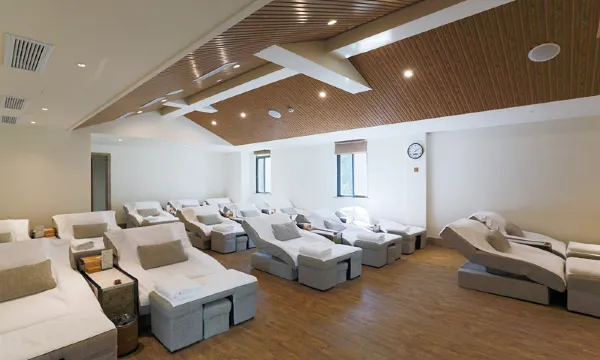 阳羡温泉水源取自于酒店地下2008米,出口水温53℃。水质清澈,晶莹爽滑。阳羡温泉于2022年1月荣获“省级绿色矿山”。并经省国土资源厅检测,温泉富含有氡、偏硅酸、锌、锶、锰等微量元素。其中氡、偏硅酸两种元素均达到国家理疗用水水质标准,使人浸泡后肤凝脂滑、精神焕发。阳羡温泉设计在风景秀美的天然竹林里,养生区、原汤区、情侣区和亲子区,贴心地满足您不同的需求,更有秀竹美景的环抱为您带来无限惬意。