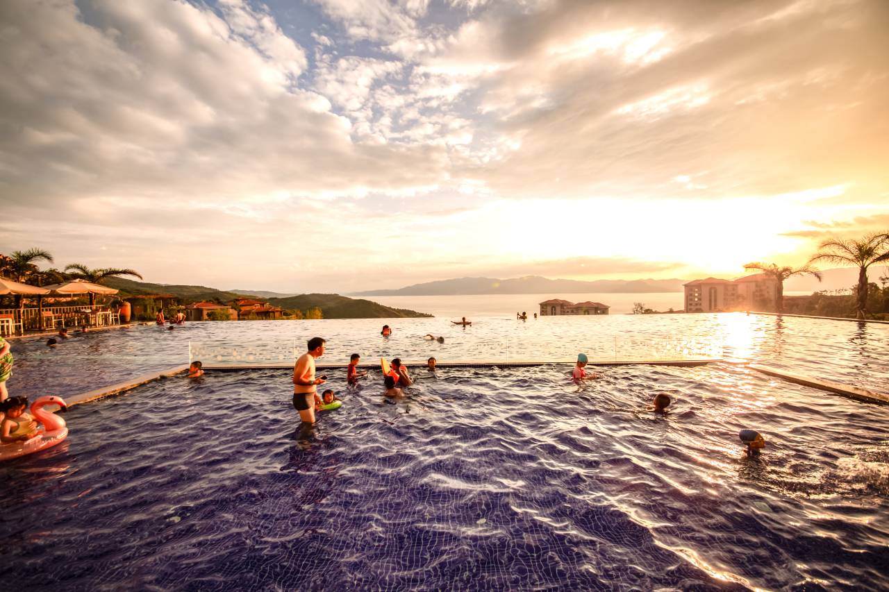 在钢筋水泥快速冲击的互联网时代,偶尔停下脚步,好好感受一下这个充满生机且赋予生命力的世界。与爱人相偎阳台,看日出日落,俯览抚仙湖,感受湖水的平静与夕阳美景,重回甜蜜时刻;与孩子一起在游乐区奔跑嬉戏,享受难得的亲子时光;陪伴父母在花园闲庭散步,家长里短,弥补缺失的关怀与问候;约上三五好友在餐厅开怀畅饮,撸串,分享彼此的喜怒哀乐;亦或静静的呆在书吧,享受难得的私密时光。