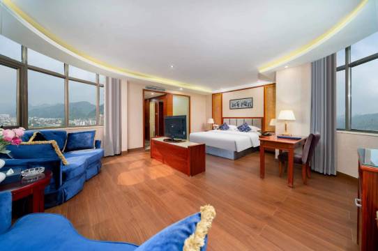 酒店在网上的评价褒贬不一,但实际入住后觉得还是很不错的。首先春节入住送小七孔门票,太棒了。客房内虽然装修时间久了,但设施很齐全!居然有烘衣机,从没有在任何酒店看到,不论普通还是高档的,就只有洗衣房,但房间内有太贴心了。而且卫生间居然配了冲洗龙头,一般只有高档的海边度假酒店才会配,没想到这里居然有,这要是夏天涉水玩好回来可就超赞了。酒店一楼的餐厅做的菜味道也不错,晚饭也在酒店解决了。如果不追求太高档,需要性价比高的酒店,这里真的不错呦。