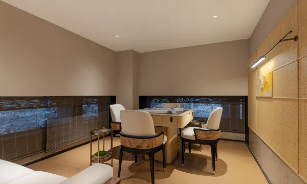 酒店共设客房一百余间,健身房、餐厅、按摩仓、中小型及多功能会议室等配套设施一应俱全。酒店整体设计布局沿用品牌一以贯之的光影及自然共构的中式美学手法,传递美学至上的居停体验,打造独特的中式雅致生活。