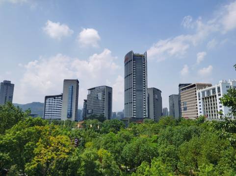 位于市中心,是美食休闲的好去处,夜市很热闹,周边KTV、洗脚城等娱乐场所也很多。房间宽敞不压抑,空气很好,户外鸟语花香,住着挺舒服。