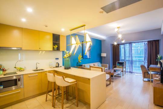 公寓位置非常好,就在万象城旁边,离地铁站也很近。周边吃饭、超市、商场全都有。而且去各个景点也都很方便。房间宽敞干净,工作人员态度非常好。
