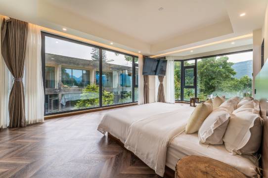 房间很大,有阳台,爬几步山到达酒店,离路有一点距离,晚上睡觉不吵。外面的植物种得很不错、有花境。有智能马桶,好评。