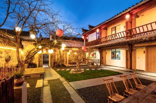 黛晴房总共拥有三处院落,壹号院是个古香古色的小院子,精细的木雕,绝美的砖雕,一砖一瓦无不展现着主人的用心;贰号院在一个安静的小巷子里,一颗硕果累累的柿子树立在院子中,一个百年的老宅子,寓意着住进老宅子的每一个客人都能事事如意;叁号院就在南湖边,出门就是湖堤,步步是景。