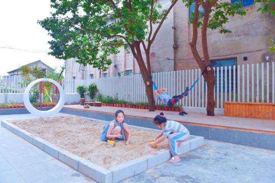 阳光充足的庭院内,有吊床、摇椅,桌椅,供客人休息。还有小朋友爱的沙池、滑梯、泳池。能让家长放心的让孩子玩耍,楼顶的露台更是民宿的优势,可以很清晰地看到迪士尼城堡,每天晚上可以准时看到迪士尼的烟花,风景美不胜收。