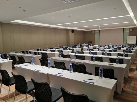 餐厅提供清新营养的健康热早餐、种类丰富的各式简餐和蔬果饮品,让您体验高品质的健康饮食。健身房拥有选择丰富的多种健身器材与设备,任您挥洒汗水,重塑活力。同时酒店拥有五个会议室,可以给您提供实时开会场所。酒店一楼餐厅可以提供200人左右共同用餐场地。