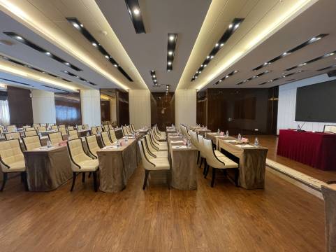 酒店设有会议室2间(可容纳20-120人左右),各类客房百余间,房内均设有独立wifi,纯净饮用水、烘干毛巾架及冷暖中央空调。