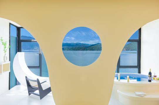房间有泡澡池,从大理开过去6小时真的泡个澡很舒服了!房间有一次新的毛巾,干净卫生,还赠送咖啡,早餐也是看着湖景就可以享受。