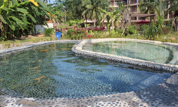 酒店集旅游,度假,休闲,疗养,会议一体的综合性温泉酒店,设施设备齐全,拥有各类客房百余间,大中小会议厅及宴会厅。同时设有露天音乐吧、露天电影、儿童游乐园、15个大小养生温泉泡池、室外游泳池、儿童水上乐园、土耳其干蒸房、黑玉石养生板、亲亲鱼疗池等。川、琼、粤风味的湖景中餐厅,特色养生温泉为锅为主打,适合各类人群食用,味美更健康。