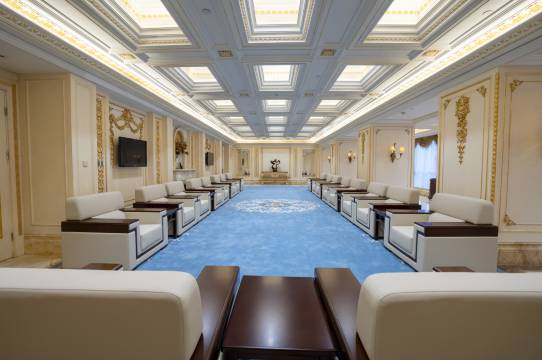 再说说酒店本身——从走进大堂那一刻起,金碧辉煌的欧式设计就震撼到我,高挑的穹顶、水晶吊灯、金色雕塑,连空气都透着奢华与优雅。电梯按钮清晰,楼层功能标注详细,住客体验感拉满。