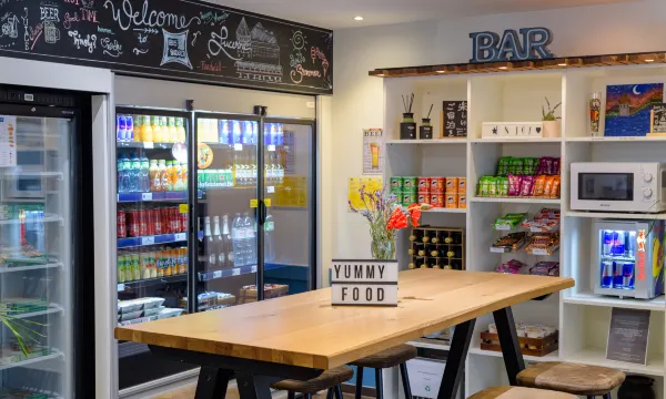 大堂不大,有微波炉可以加热食物 有小超市