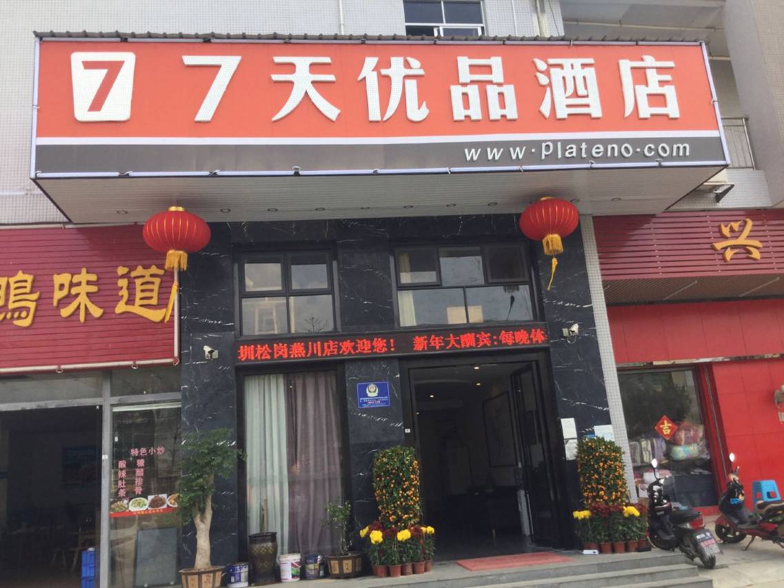 7天优品-深圳松岗燕川店位于深圳市松岗街道具有光荣革命传统的燕川社区朝阳路与燕朝咱交汇处,由广田路紧接龙大、南光高速,距深圳北站,宝安国际机场,福永码头约30分钟车程,距松岗汽车站10-15分钟车程,周边有宝安“一大”纪念馆,松岗琥珀珠宝交易市场用工业园区400多家高新企业。 酒店于2016年12月28日开业,装修新颖,环境舒适,价格实惠,酒店无线wifi全面覆盖100兆光纤客房均配有洁净的封包浴巾、面巾,独立吹风机,冷暖空调,40寸大型网络电视机,星级雅兰护脊床垫,床头加入USB充电装置,保障您住得干净舒适,同时酒店提供免费大型免费停车场,让您的“爱车”在您休息的同时也安心停放,分店全体员工期待您来体验!