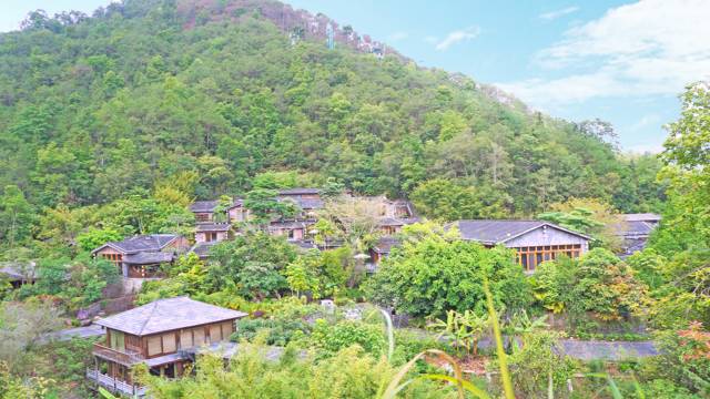 腾冲热海温泉度假酒店·养生阁位于腾冲热海康养度假胜地内,周边森林覆盖率高达90%,空气负氧离子含量极高,PM2.5常年<5,年平均气温14.7℃,海拔1520米,高山森林气候环境优越。