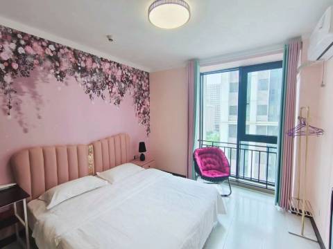 老板人非常好,天气热提前我们把空调打开了,太贴心了,房间干净整洁,床也舒服。2个大落地窗特别透亮,离万达很近在窗口能看到万达,非常满意,下次还会选择他家