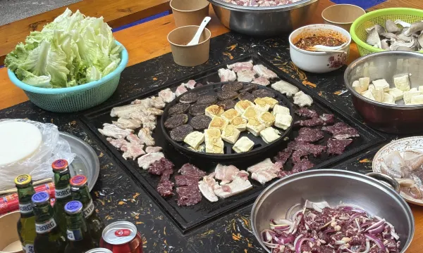 陪妈妈出来逛逛,这边离忠义市场和古城都很近。有接送行李的贴心服务。我们住一楼,很方便。古色古香的院落。房间有地暖,冬季很温暖。入住当天老板请吃当地牦牛烤肉和土鸡菌菇火锅,很Nice。我们连住的,还安排了送机。很贴心。每早一杯咖啡,开始一天的行程~