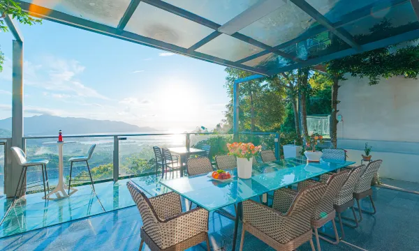 花筑奢·南澳半岭山居民宿坐落在汕头南澳岛南澳县园山半山腰上,地理位置很优越,背山靠海,后面是园山生态村,前面是大海,从房间落地玻璃窗可以看到绝美的山景和海景,非常美。在这里还可以看到非常美的日落景观,也是民宿的一大亮点。民宿由两夫妻一起设计,经过7个月的打造,建成玻璃栈道餐厅 茶室弧度玻璃的设计 以及全玻璃无边缝泳泳池设计 ,每间房超大全落地玻璃 选址在1300多亩的原始森林里 独有的一处后现代风格民宿!房间设计符合现代人的生活习惯,配有高速WIFI、中央空调、自动窗帘、高清投影、液晶电视、智能马桶等。民宿距离南澳岛海滨浴场青澳湾车程不远,诗和远方,山与大海,都可以拥有。餐厅内聘请星级大厨,可以享受到南澳岛特色海鲜大餐,真诚欢迎各位客人来打卡。
