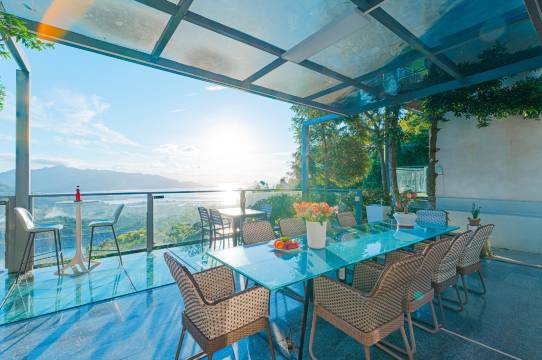 房间视野非常好,可以远眺,阳台空间也非常大。老板非常热情可以坐下来品尝老板泡的茶,一起聊天。楼下有茶室,活动区域很大,老板也很热爱生活,整个酒店区域种满了花花草草。每个服务员都很热情,有种回到了家的感觉。可能因为在半山腰的缘故,稍稍会有一些虫子,但是整体来说,瑕不掩瑜,非常棒的体验