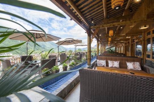 这个酒店真的是意外的惊喜,临时找的酒店,离镇上开车17分钟,除了吃喝玩儿买东西不方便,这里太适合小住放松了!我们从海螺沟玩儿了出来,直奔酒店休息,晚上特别安静,老板安排的房间在二楼,堆柴的地方挡住了房间的视线,小孩子练字看书光线差了点,看雪山能看到一点,但是上顶楼真的超级舒服哦!视线无遮挡,能看到三面雪山。