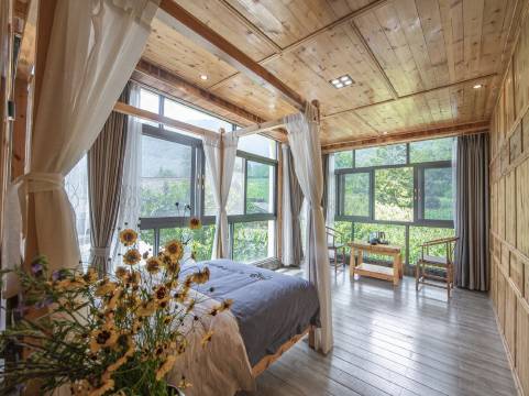 店长服务周到热情,房间位置风景优美,装修风格是自然原木风,干净又宽敞,非常舒适。我们订的家庭套房,相当于一室一厅二卫,使用起来十分便利,赠送的早餐也很健康营养,有免费停车位,一家人都挺满意的!😊😊👍👍