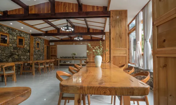酒店坐落在燕子沟古镇的静谧一侧,酒店周边全是独特的景观,在房间打开窗就能到龙华山、爱德嘉峰,酒店门口就是通往贡嘎雪山、红石公园、雅家情海、大冰瀑布、雅家埂等自然奇观的必经要道,也是秋赏彩林、冬观冰川的起点。 酒店占地10余亩,建筑面积达3000平方米,采用原生态石与木结构,匠心设计和建造,每一处细节都透露着对自然的敬畏与尊重。入住酒店,无微不至的贴心管家般的服务,让您感受到无比温馨与安全,并静享大自然的雄伟和安宁。 酒店客房床品均按照高星级酒店标准精心打造,确保您的休憩时光既舒适又惬意,感受从未有的好质量睡觉。酒店内设施完善,大型停车场、私家小院休闲区、早餐厅、餐饮包间、茶室、棋牌室、多功能会议室等一应俱全,无论是个人休闲度假,还是企业团建、同学聚会、生日派对、求婚仪式,我们都能提供量身定制的服务,让您的每一个瞬间都充满惊喜与感动。 对于热爱运动与自然探索的您,酒店更是户外活动的理想基地,峡谷穿越、登山徒步、赏雪观景,每一次挑战都将成为您生命中难忘的记忆。 在餐饮方面,我们主打本地特色菜肴,绿色有机蔬菜与山间放养的农家土鸡,搭配天然优质山泉水,为您呈现一场味蕾的盛宴。餐厅、餐饮包厢、团队宴会厅、户外烧烤,柴火鸡等多种用餐选择满足您的不同需求。在这里,您可以一边品尝美食,一边欣赏雪山美景,享受喝茶聊天、休闲就餐的优质体验。 这里,是天然森林氧吧,让您远离城市的喧嚣,回归大自然的怀抱,让心灵得到彻底的放松与净化。在酒店,您将邂逅一场不一样的旅行,收获一份独特的记忆。让我们携手,共赴这场心灵的盛宴,感受大自然的魅力与生活的美好。