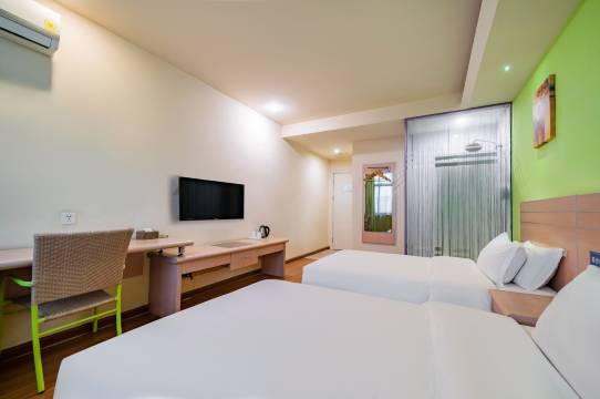 酒店装修比较清爽,卫生干净,里面设施齐全,空调还挺给力的,房间空间大,门口还可以免费停车,周边配套设施也比较齐全,离地铁口步行几分钟就到酒店,位置不错,前台服务态度非常好很热情,电梯必须刷卡才能上去还是很安全的,总的性价比挺高的,挺推荐的